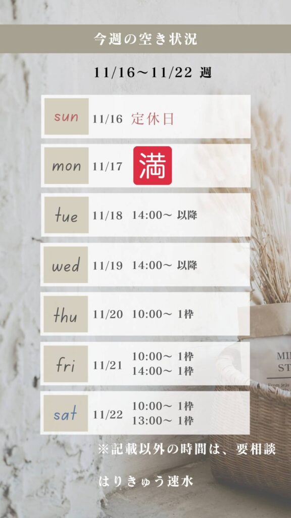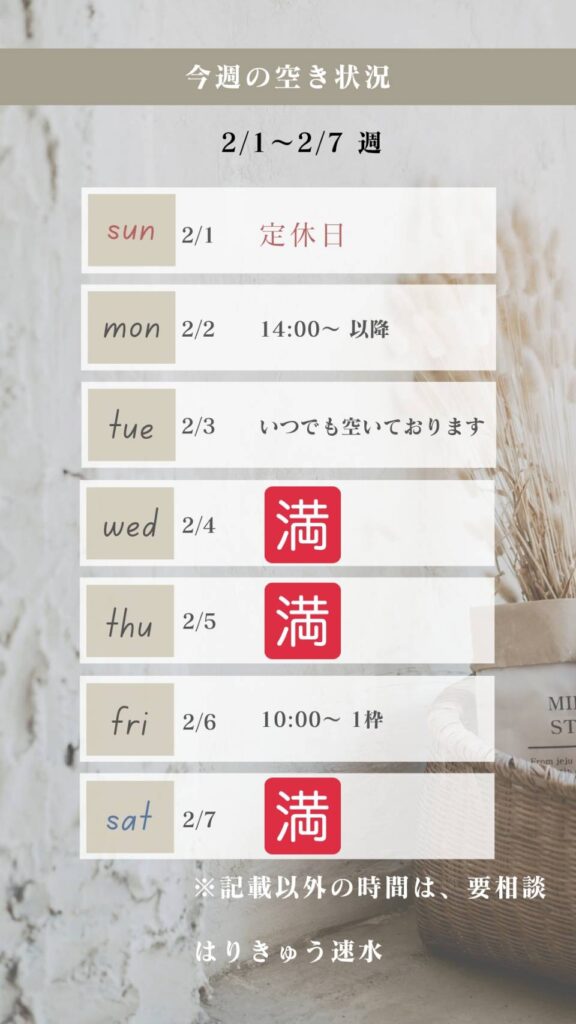 病気とわかってから治療しにくることも大事ですが、鍼灸の古典では「未病治」(”未だ病まざるを治す”)、つまり病と判明する前(体の不調を感じるぐらい)に施術することで病の予防につながることになります。